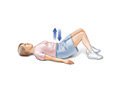 - Lie on your back with your knees bent and supported by large pillows. Or lie on the floor with your legs on the seat of a sofa or chair.