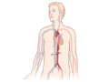 - Abdominal aorta. This large blood vessel passes down the back of the chest and belly. It supplies blood to the lower part of the body and the legs.
