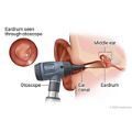 Your doctor will gently pull the ear back and slightly up to straighten the ear canal. For a baby under 12 months, the ear will be pulled downward and out to straighten the ear canal. The doctor will then insert the pointed end (speculum) of the otoscope into the ear and gently move the speculum through the middle of the ear canal to avoid irritating the canal lining. The doctor will look at each eardrum (tympanic membrane).