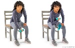 1. Sit leaning forward with your legs slightly spread. Then place your affected forearm on your thigh with your palm down.