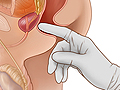 For transrectal ultrasound, you will be asked to lie on your left side with your knees bent. A digital rectal examination may be done before the ultrasound test. Then a lubricated transducer probe will be gently placed into your rectum. It will slowly be moved to take pictures from different angles. You may feel some pressure. Water may be put into your rectum to clean the end of the transducer so that clear pictures can be seen.