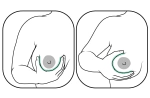 - U hold: Your thumb is on the outer side of your breast. Your fingers are on the inner side.