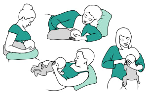 Try different positions if you need to. Find what works for you and your baby. Different holds include cradle, cross-cradle, football, Australian, laid back, and side-lying.