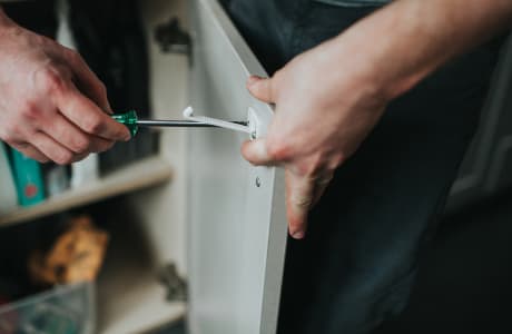 - Put childproof locks or guards on all windows, doors, drawers, and kitchen and bathroom cabinets.