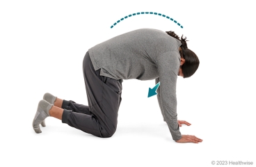 - Start on your hands and knees on a mat or carpet. Place your hands directly below your shoulders and your knees below your hips. Slowly breathe in.