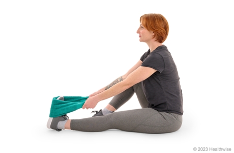 Pull back gently with the towel so that you feel a stretch in your calf.