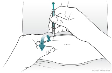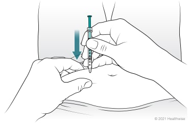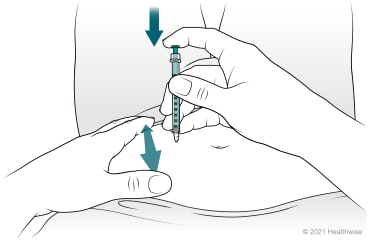 Let go of the pinched-up area, and push the plunger of the syringe all the way in.